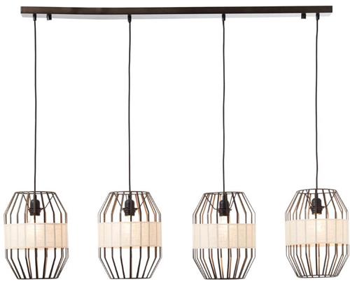 Brillant | Helling hanglamp 4-vlammig zwart/naturel | 4x A60, E27, 52W, geschikt voor normale lampen (niet meegeleverd)