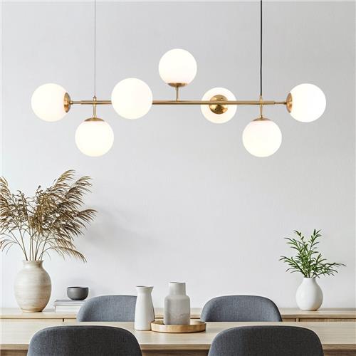 Laagste prijs € 139,96 voor Design hanglamp met 7-lichts melkglazen bollen is gemeten op 19-11-2024.