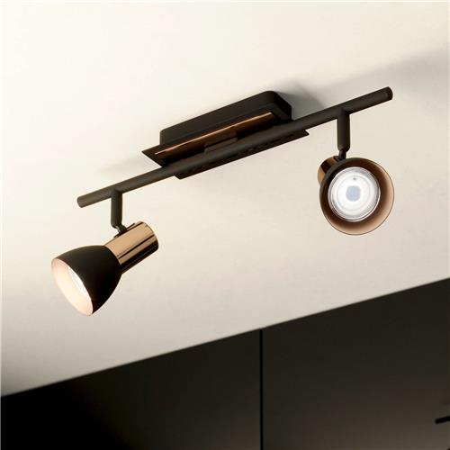 EGLO Barnham - Spot - 2 Lichts - Zwart, Koper