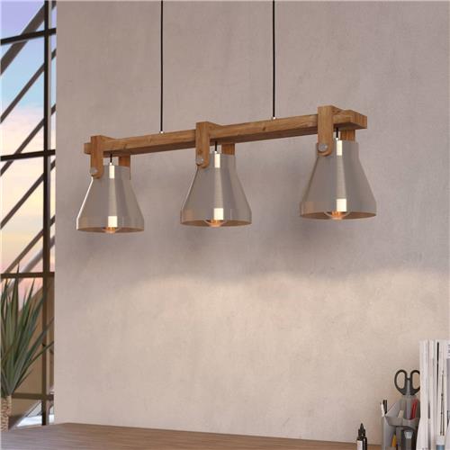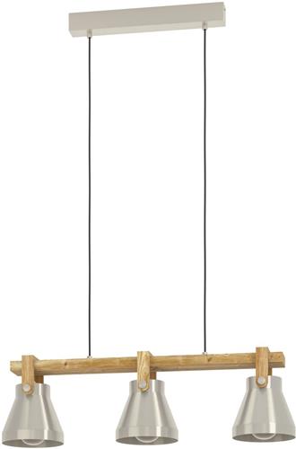 EGLO Cawton Hanglamp - E27 - 76 cm - Grijs/Bruin - Staal/Hout