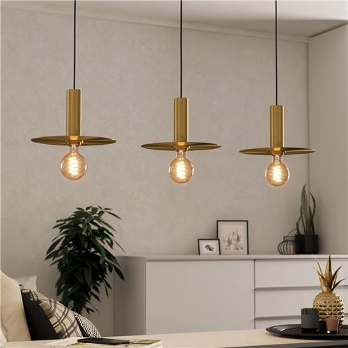 De hoogwaardige stalen materialen zorgen voor een elegante uitstraling en de geborstelde gouden afwerking voegt een vleugje luxe toe aan het geheel. Deze EGLO Escandell hanglamp wordt geleverd zonder lichtbron, waardoor je zelf de keuze hebt om de perfecte E27 lichtbronnen van maximaal 3X40W toe te voegen.