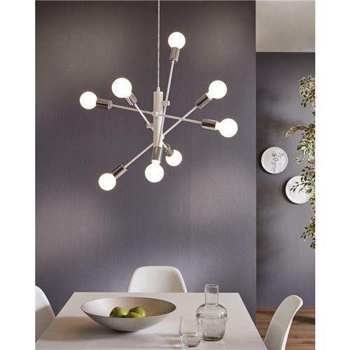 De EGLO Gradoli hanglamp heeft acht lichtpunten met een E27 fitting die elk geschikt zijn voor een lichtbron van maximaal 40W. Deze lamp is eenvoudig aan te sluiten op een dimmer (exclusief) of te dimmen met smart EGLO connect lichtbronnen. Je kunt de hoogte van de lamp eenvoudig aanpassen tijdens de installatie. De bediening van de verlichting verloopt via een aan/uit schakelaar, waardoor je de lamp gemakkelijk in gebruik kunt nemen.
