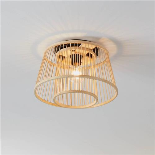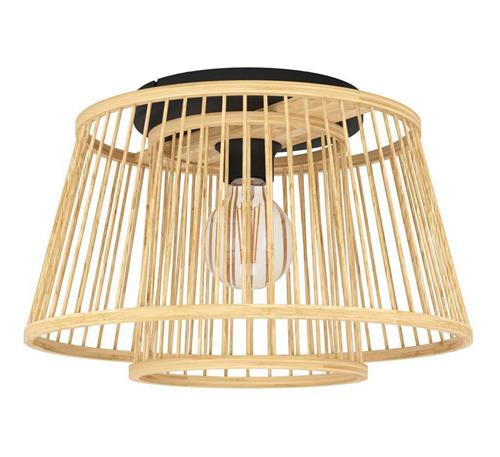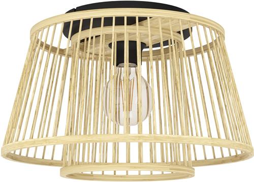 EGLO Hykeham Plafondlamp - E27 - Ø 38 cm - Staal/Bamboe - Zwart/Bruin