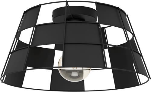 De EGLO Pontefract Plafondlamp is een uniek en opvallend stuk dat perfect is voor het toevoegen van een industriële en moderne sfeer aan elke kamer. Met zijn dambordpatroon en zwarte kleur past deze lamp gemakkelijk in elk interieur. De lamp is gemaakt van hoogwaardig staal en heeft een diameter van 42 cm, waardoor hij een echte eyecatcher is aan het plafond.
