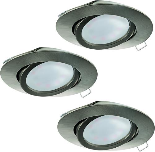EGLO Tedo - Inbouwspotje - LED - Ø80mm. - Nikkel-Mat - Set 3 Spots - Kantelbaar