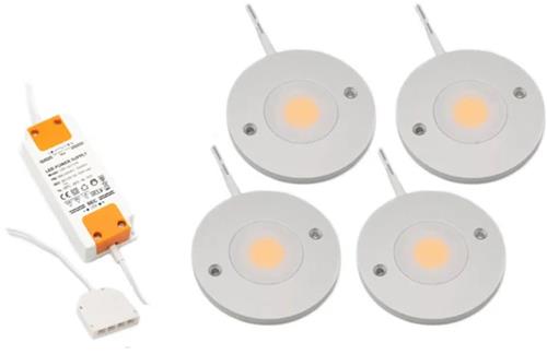 De LED kastverlichting Kaya complete set van 4 spots zorgt voor optimaal zicht in je keuken of kledingkast. Met een warm witte lichtkleur van 3000K en een lichtopbrengst van 3 watt per spot, creëren de spots een sfeervolle en functionele verlichting. De set bestaat uit vier opbouwspots, een transformator en een connectorbox, waardoor installatie eenvoudig is.