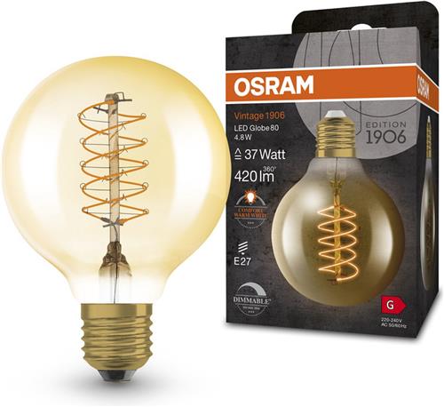 - Bij Lampen24 kun je Ledvance Vintage 1906 LED E27 Globe Goud 4.8W 420lm - 822 Zeer Warm Wit | Dimbaar - Vervangt 37W kopen voor de prijs van € 12,90. Dit is vandaag de goedkoopste webshop.