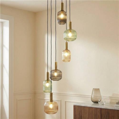 Laagste prijs € 207,90 voor Lindby - hanglamp - 6lichts - Glas, ijzer - E27 - rokerig grijs is gemeten op 19-11-2024.