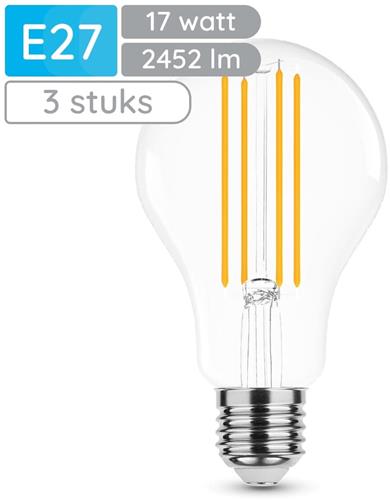 Laagste prijs € 22,95 voor Modee E27 LED Lamp 17W - 2452lm - 4000K - Neutraal Wit - LED Filament Globe A70 - Vervangt 150W Halogeen Gloeilamp - 3 stuks is gemeten op 19-11-2024.