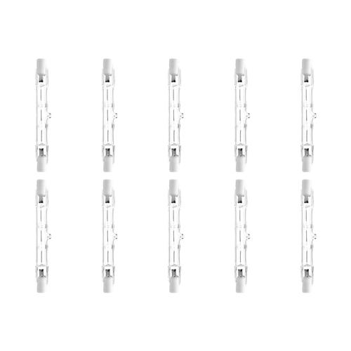 Pakketinhoud: 10 stuks Modee Halogeenlampen R7s. Breng je verlichting naar een hoger niveau met deze lampen en geniet van helder, warm licht in elke ruimte! Afmetingen van de verpakking: breedte 120mm, hoogte 20mm, lengte 215mm. Gewicht: 100g. Deze lampen zijn ontworpen voor gebruik met lichtnetvoeding en zijn ideaal voor binnenruimtes, waar ze een aangename sfeer zullen creëren met hun warme witte licht.