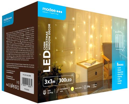 - Bij Bol.com kun je Modee Lichtgordijn 3x3 Meter - Kerstverlichting voor Buiten en Binnen - 300 LED Lampjes - 8 Lichtstanden - IP44 - 2700K - Warm Wit Licht - 3 stuks kopen voor de prijs van € 57,50. Dit is vandaag de goedkoopste webshop.