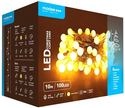 - Bij Bol.com kun je Modee Lichtsnoer Kerst 10 Meter - Kerstverlichting voor Buiten en Binnen - 100 LED Lampjes 8 Lichtstanden - IP44 - 2550K - Warm Wit Licht - 5 stuks kopen voor de prijs van € 59,95. Dit is vandaag de goedkoopste webshop.