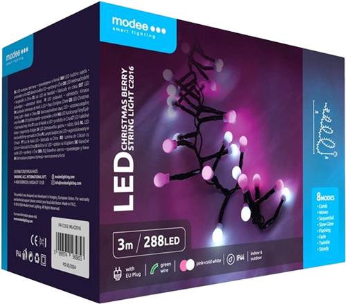 - Bij Bol.com kun je Modee Lichtsnoer Kerst 3 Meter - Kerstverlichting voor Buiten en Binnen - 288 LED Lampjes - 8 Lichtstanden - IP44 - 10.000K - Roze en Koud Wit Licht - 3 stuks kopen voor de prijs van € 54,95. Dit is vandaag de goedkoopste webshop.