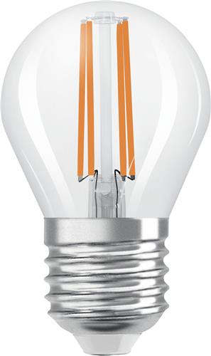 De Osram Classic LED E27 Kogel Filament Helder 3.8W 806lm - 827 Zeer Warm Wit is een energiezuinige LED lamp die perfect is om een warme sfeer te creëren in elke ruimte. Met een vermogen van 3.8 Watt en een lichtopbrengst van 806 Lumen is deze lamp een uitstekende vervanger voor een 60W gloeilamp. De lamp heeft een E27 fitting, waardoor deze eenvoudig te installeren is in standaard lampen.