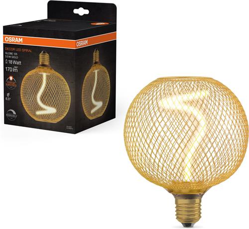 - Bij Lampen24 kun je OSRAM DECOR LED-lamp met spiraalgloeidraad in metalen behuizing (bolvormig), loodvrij glas, warm wit comfortlicht (1800 K), 3,5 W / 170 lm, E27 fitting, dimbaar, 125 mm, lampbehuizing in goud. kopen voor de prijs van € 19,90. Dit is vandaag de goedkoopste webshop.