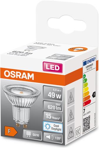 - Bij Bol.com kun je OSRAM LED Sterreflectorlamp PAR16 voor spots en spots in daglichtwit (6500 K), helder, 50 mm diameter, met 6,9 W voor 620 lm, GU10 retrofit pinfitting, loodvrij glas, IP20, EEK F. kopen voor de prijs van € 8,99. Dit is vandaag de goedkoopste webshop.