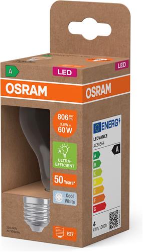 - Bij Bol.com kun je OSRAM LED SUPERSTAR+ CLASSIC A FIL 60 LED-Lampe, E27, klassische Kolbenform, 3,6W, 806lm, 4000K, kaltweißes Licht, lange Lebensdauer, bis zu 60% Energieeinsparung im Vergleich zu Standard LED-Lampen kopen voor de prijs van € 7,99. Dit is vandaag de goedkoopste webshop.