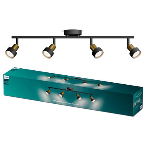 | Verpakkingsinhoud | Philips Conduit opbouwspot 4 licht - zwart/messing - 4x5W |