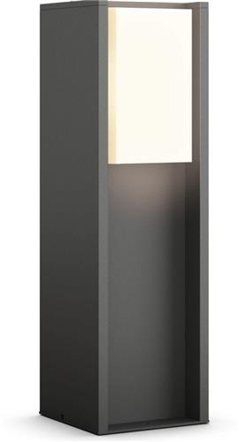 Deze sokkellamp van Philips Hue is voorzien van een dimfunctie, zodat je de helderheid naar wens kunt aanpassen. De bijgeleverde LED-lichtbron zorgt voor een energiezuinige verlichting met een lichtopbrengst van 806 lm. Met een IP-waarde van IP44 is de lamp bestand tegen regen en stof, waardoor hij ideaal is voor buitengebruik.