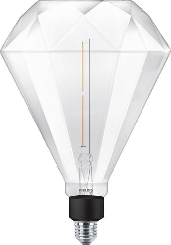 De Philips LED diamond_giant 35W E27 CL DIM lamp zorgt voor een bijzondere toevoeging aan elke ruimte. Met zijn diamantvorm en E27-fitting past hij perfect in de meeste lampen met grote fitting. Deze LED-lamp biedt een sfeervol warmwit licht en heeft een kleurtemperatuur van 3000 K, waardoor hij ideaal is voor het creëren van een uitnodigende ambiance om vrienden te ontvangen of te ontspannen.