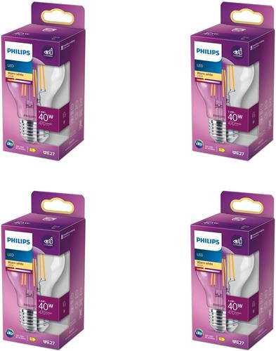 - Op dit moment is Philips Voordeelverpakking - E27 - LED Standaardlamp - Helder - 40W - Niet Dimbaar - Koelwit Licht - Set van 4 Stuks in de aanbieding bij Bol.com. Profiteer van deze aanbieding!