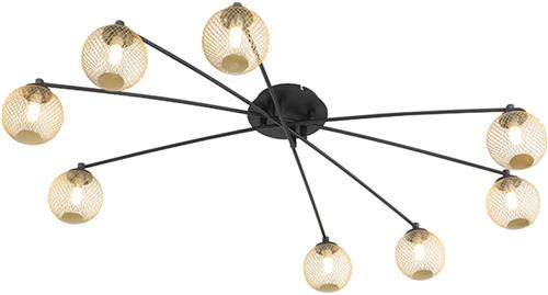 QAZQA athens - Moderne Plafondlamp - 8 lichts - L 1000 mm - Zwart Goud - Woonkamer | Slaapkamer | Keuken