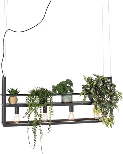 QAZQA cage rack - Industriele Hanglamp eettafel voor boven de eettafel | in eetkamer - 4 lichts - L 100 cm - Zwart - Industrieel - Woonkamer | Slaapkamer | Keuken