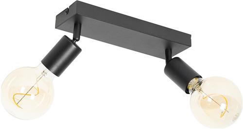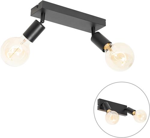 QAZQA facil - Moderne Wand en Plafondspot | Spotje | Opbouwspot - 2 lichts - L 35 cm - Zwart - Woonkamer | Slaapkamer | Keuken