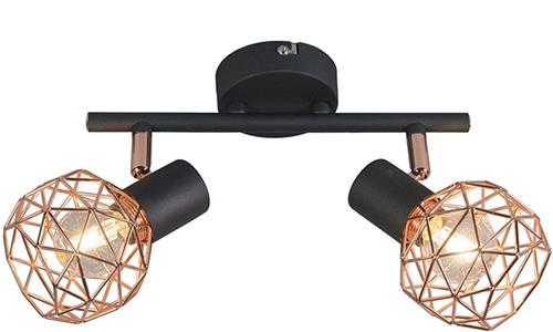 | Verpakkingsinhoud | Moderne spot zwart met koper 2-lichts - Mesh + indien nodig handleiding en bijbehorende bevestigingsmaterialen. |
