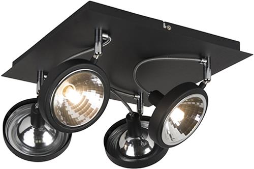 QAZQA nox - Moderne Plafondspot | Spotje | Opbouwspot - 4 lichts - L 320 mm - Zwart - Woonkamer | Slaapkamer | Keuken