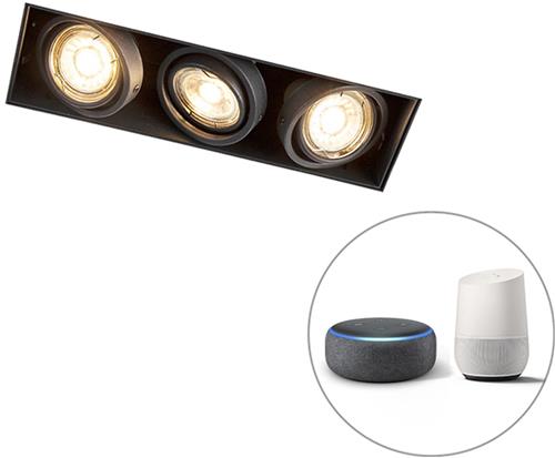 QAZQA oneon trimless 50 - Design Dimbare LED Smart Inbouwspot incl. wifi met Dimmer - 3 lichts - L 26.9 cm - Zwart - Industrieel - Woonkamer | Slaapkamer | Keuken