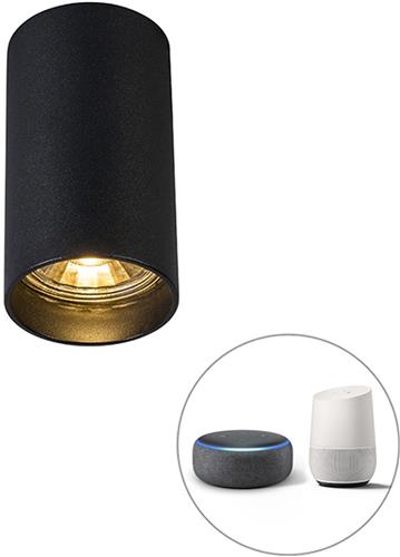 QAZQA tuba - Design Dimbare LED Smart Plafondspot | Spotje | Opbouwspot incl. wifi met Dimmer - 1 lichts - Ø 5.5 cm - Zwart - Woonkamer | Slaapkamer | Keuken
