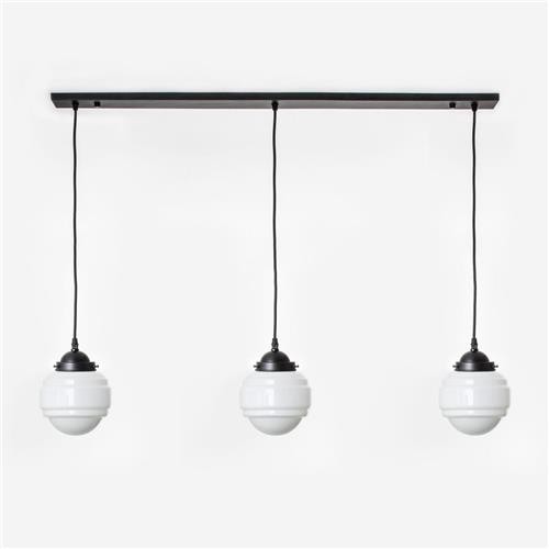 Met de Art Deco Trade - 3 x Polkadot aan plafondbalk Moonlight haal je een stijlvolle en unieke verlichtingsoplossing in huis. De polkadot lampen zijn handgeblazen en hebben een opaal wit glas dat zorgt voor een sfeervolle uitstraling. De totale lengte van de balk is 100 cm en de breedte is 8 cm, waardoor hij perfect past in verschillende ruimtes. Je hebt de mogelijkheid om de 3 katoenen pendels te monteren op 40-40 cm of 45-45 cm vanaf het midden, afhankelijk van jouw voorkeur.