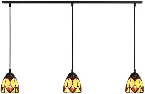 Dit prachtige Tiffany Parabola glaskapje is een ware eyecatcher in huis. Met de hand vervaardigd volgens de Tiffany techniek, is het glas verwarmd en gebogen om een prachtige vloeiende vorm te creëren. De totale lengte van de balk is 100 cm en de breedte is 8 cm. Je hebt de mogelijkheid om de 3 katoenpendels op 40-40 of 45-45 cm ten opzichte van het midden te monteren. De katoensnoeren zijn standaard 150 cm lang en eenvoudig in te korten naar wens.
