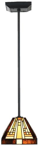 Deze pittoreske, strakke hanglamp van Art Deco Trade heeft een piramidevormige kap en straalt een eigenwijs tintje uit. Het geometrisch gepuzzeld glas in warme tinten bootst het effect van een waaier of een zon prachtig na. Deze Tiffany hanglamp is perfect te combineren met andere lampen uit de Geometric serie en kan ook bijzonder mooi staan in combinatie met de Rising Sun Uplighter. Zeker als duo boven een (eet)tafel zal deze hanglamp een eyecatcher zijn. De lamp wordt geleverd met een strakke, vierkante pendant in zwart die op twee verschillende lengtes gemonteerd kan worden, namelijk 35 of 65 cm. De afmetingen van de glazen kap zijn 19 x 12 x 19 cm.