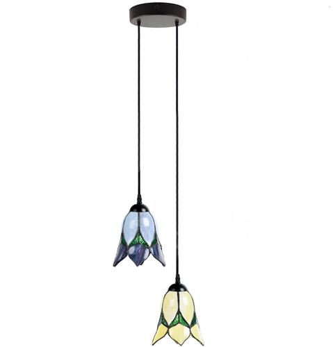 De Tiffany kroonluchter met twee tulpen in paars en geel van Art Deco Trade - Coloured by Art is een ware blikvanger in elke ruimte. De slanke gebogen bloemblaadjes geven deze kroonluchter een speels en stijlvol uiterlijk, perfect voor in hallen, trappenhuizen, boven de salontafel of eettafel.