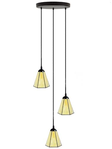 Een echte lente-bode! Deze ontluikende Tiffany bloem is uitgevoerd in goud geel en daar wordt iedereen blij van. Ogenschijnlijk een simpele bloem? Nee absoluut niet... De Narcis is zeer ijdel, want in het hart van de kelk laat de bloemlamp een oranje "trompet" zien. De lichtbron wordt zo liefdevol omsloten en het licht ook nog eens prachtig gefilterd. De drie glaskappen zijn geassembleerd aan Vintage linnen snoeren. De snoeren zijn op hun beurt bevestigd aan een ronde plafondplaat van 25 cm diameter Linnen snoer: 1,5m.