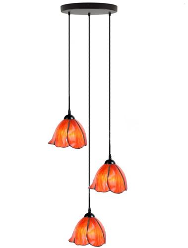 Hoe mooi kan een klaproos zijn! Een lievelingsbloem van veel mensen. Tere blaadjes die elkaar overlappen. Aan de voet van de forse kroonbladeren zien wij graag een zwarte fitting, want in het hart van de roos is een zwart gedeelte te ontdekken. De verschillende hoogten waarop de glaskappen hangen, gecombineerd met prettige kleuren en vloeiende lijnen creëren een speels en stijlvol ontwerp. Mooi voor in hallen, trappenhuizen e.d. Ook boven de salontafel en eettafel! De drie glaskappen zijn geassembleerd aan Vintage linnen snoeren. De snoeren zijn op hun beurt bevestigd aan een ronde plafondplaat van 25 cm diameter Linnen snoer: 1,5m.