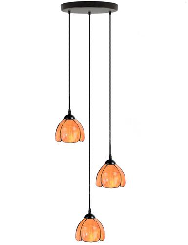 Zo charmant kan een tulp zijn! De bloem is net open gegaan en laat doorschijnende tinten rood met wat geel en groen zien als een aquarel. De Tiffany bloem heeft tere organische vormen en het is daarom niet moeilijk verliefd te worden op dit Hollandse icoon. De verschillende hoogten waarop de glaskappen hangen, gecombineerd met prettige kleuren en vloeiende lijnen creëren een speels en stijlvol ontwerp. Mooi voor in hallen, trappenhuizen etc. Ook boven de salontafel en eettafel! De drie glaskappen zijn geassembleerd aan Vintage linnen snoeren. De snoeren zijn op hun beurt bevestigd aan een ronde plafondplaat van 25 cm diameter. Linnen snoer: 1,5m.