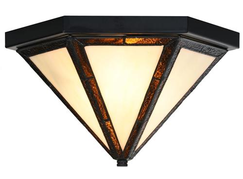 Maak kennis met de Art Deco Trade - Tiffany Plafonnière Vienna, een prachtige toevoeging aan de Geometric serie. Deze kleine en stoere lamp heeft een vijfhoekig zwart basis armatuur waaruit een puntvorm in beige en roodbruin glas oprijst. Het geheel wordt subtiel afgesloten met een zwart plat knopje, wat zorgt voor een perfecte samensmelting van de vijf driehoeken.