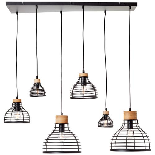 Brilliant Avia - Hanglamp - E27 max 6x40W - Zwart/Houtkleur