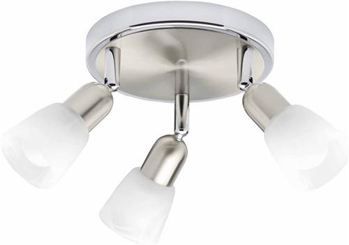 Deze plafondspot wordt geleverd zonder lichtbron, maar is geschikt voor 3 led, halogeen, gloei of spaarlampen van maximaal 40 watt met een E14 fitting. Je kunt de verlichting dimmen met een dimbare lichtbron en muurdimmer, waardoor je de sfeer in de kamer naar wens kunt aanpassen.