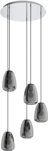Deze EGLO hanglamp is geschikt voor in totaal 5 lichtpunten, waardoor hij zorgt voor voldoende verlichting in de ruimte. De E27 fitting maakt het eenvoudig om de juiste lichtbronnen te kiezen. Let op: de lichtbronnen worden niet meegeleverd, dus je kunt zelf bepalen welke sfeer je wilt creëren met de lamp.