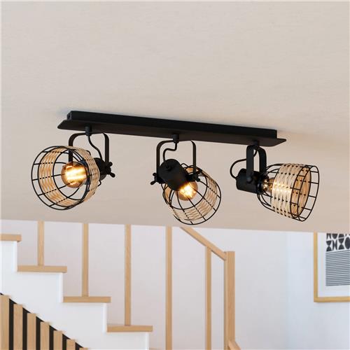 Deze EGLO plafondspot is 67 cm lang, 24 cm hoog en 14 cm breed, en biedt ruimte voor 3 E27 lichtbronnen van elk maximaal 40W (niet inbegrepen). De spot is eenvoudig aan te sluiten op een dimmer (niet inbegrepen) of te dimmen met stepdimming lichtbronnen. De lamp is bedienbaar via een aan/uit schakelaar en wordt geleverd met 2 jaar garantie.