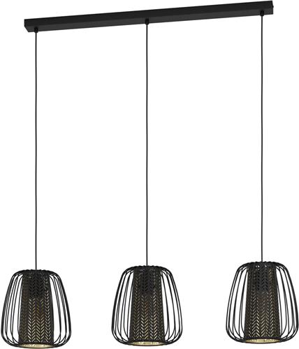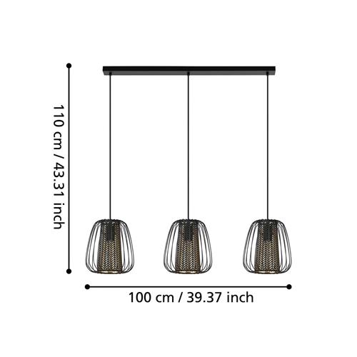 De hoogte van de EGLO Curasao Hanglamp is aanpasbaar tot maximaal 110 cm, waardoor je zelf de perfecte lengte kunt bepalen. De lamp is vervaardigd uit hoogwaardig staal en textiel, en wordt geleverd met een stoffen snoer voor een mooie afwerking. Het armatuur biedt plaats aan E27 lichtbronnen met een maximum van 3X40W (exclusief).