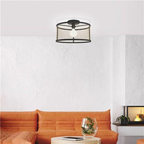 De EGLO Dellow plafonnière is met zijn stoere en industriële ontwerp een ware eyecatcher in elke woon- en/of werkruimte. De lamp heeft een diameter van 45 cm en is gemaakt van hoogwaardig staal in de kleuren zwart en goud. Hierdoor past de plafondlamp perfect in een industrieel interieur.