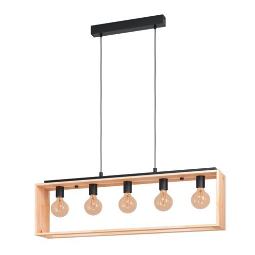 EGLO Famborough - Hanglamp - E27 - 100 cm - Zwart/Hout