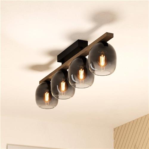 Upgrade jouw interieur met de EGLO Filago Plafondlamp, een eigentijdse toevoeging die perfect past bij de huidige designtrends. Met zijn compacte formaat van H 25 x L 88 x B 14,5 cm is deze moderne plafondlamp gemaakt van hoogwaardig staal, hout en glas. De combinatie van het zwarte plafondelement en het warme bruine hout geeft een elegant contrast dat direct in het oog springt. De glazen lampenkap zorgt voor een betoverend ombre effect dat een unieke uitstraling creëert.