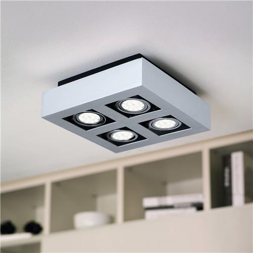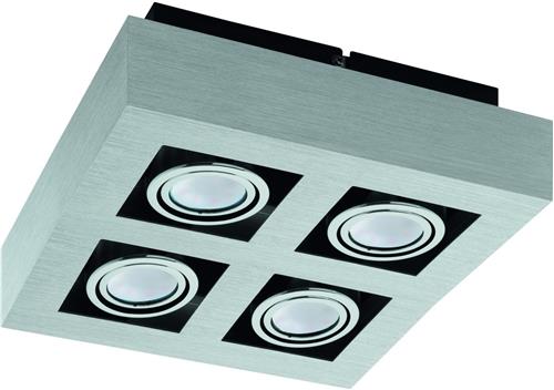 EGLO Loke 1 - Opbouwlamp - 4 Lichts - Aluminium-Geborsteld, Chroom, Zwart