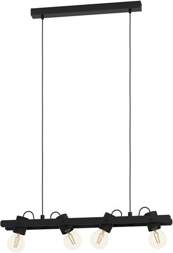 EGLO Plimsoll Hanglamp - E27 - 77 cm - Zwart - Staal/Hout